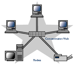 ภาพที่ 5.6 การแสดงการเชื่อมโยงคอมพิวเตอร์เพื่อสร้างเครื่อข่ายแบบดาว  หรือเครื่อข่ายอินเตอร์เน็ต